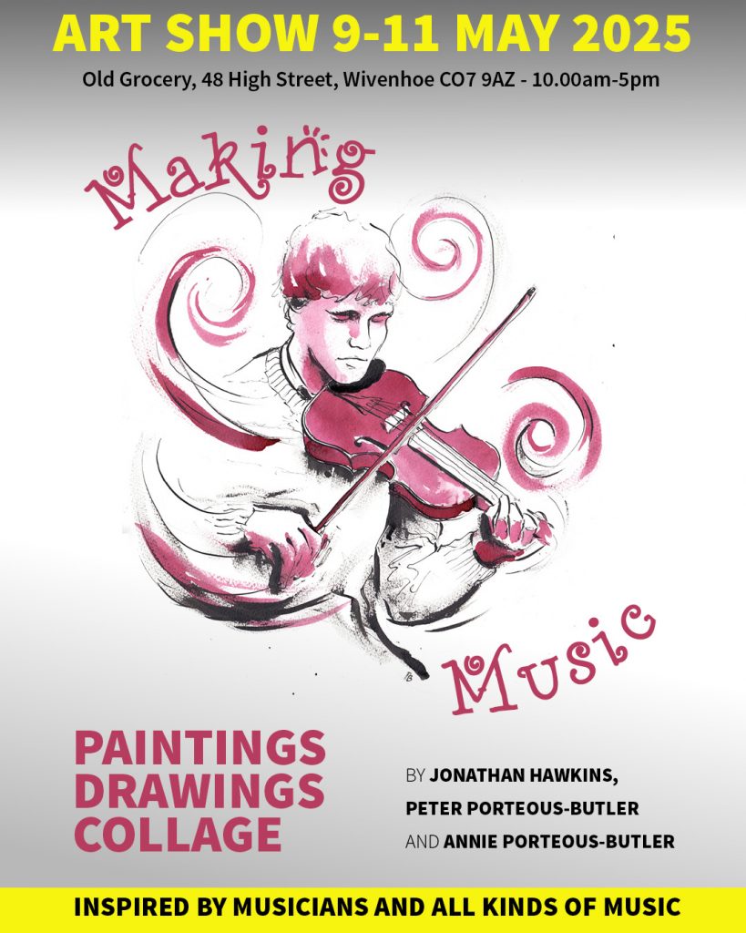 Paintings, drawings and collage by Jonathan Hawkins and Peter and Annie Porteous-Butler. Featuring artworks inspired by musicians and all kinds of music.